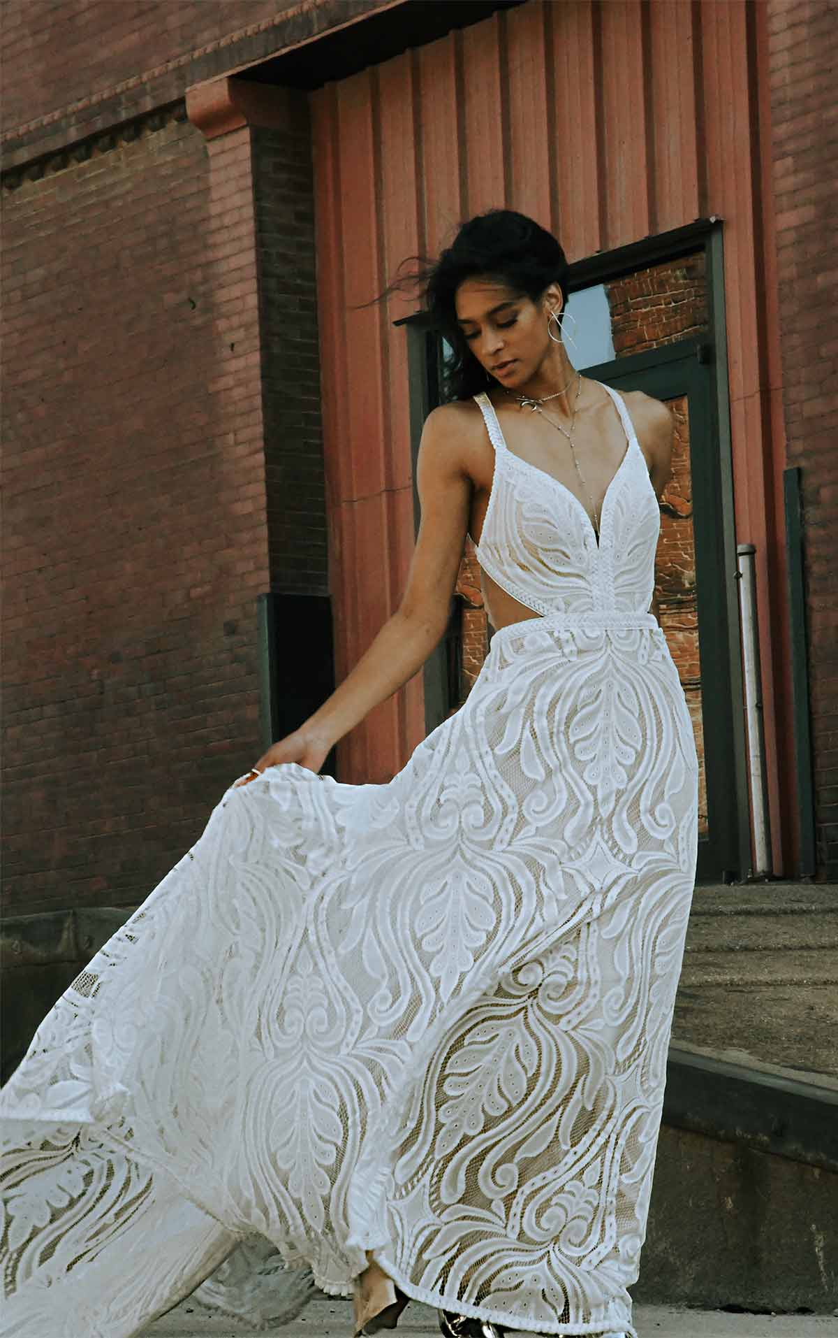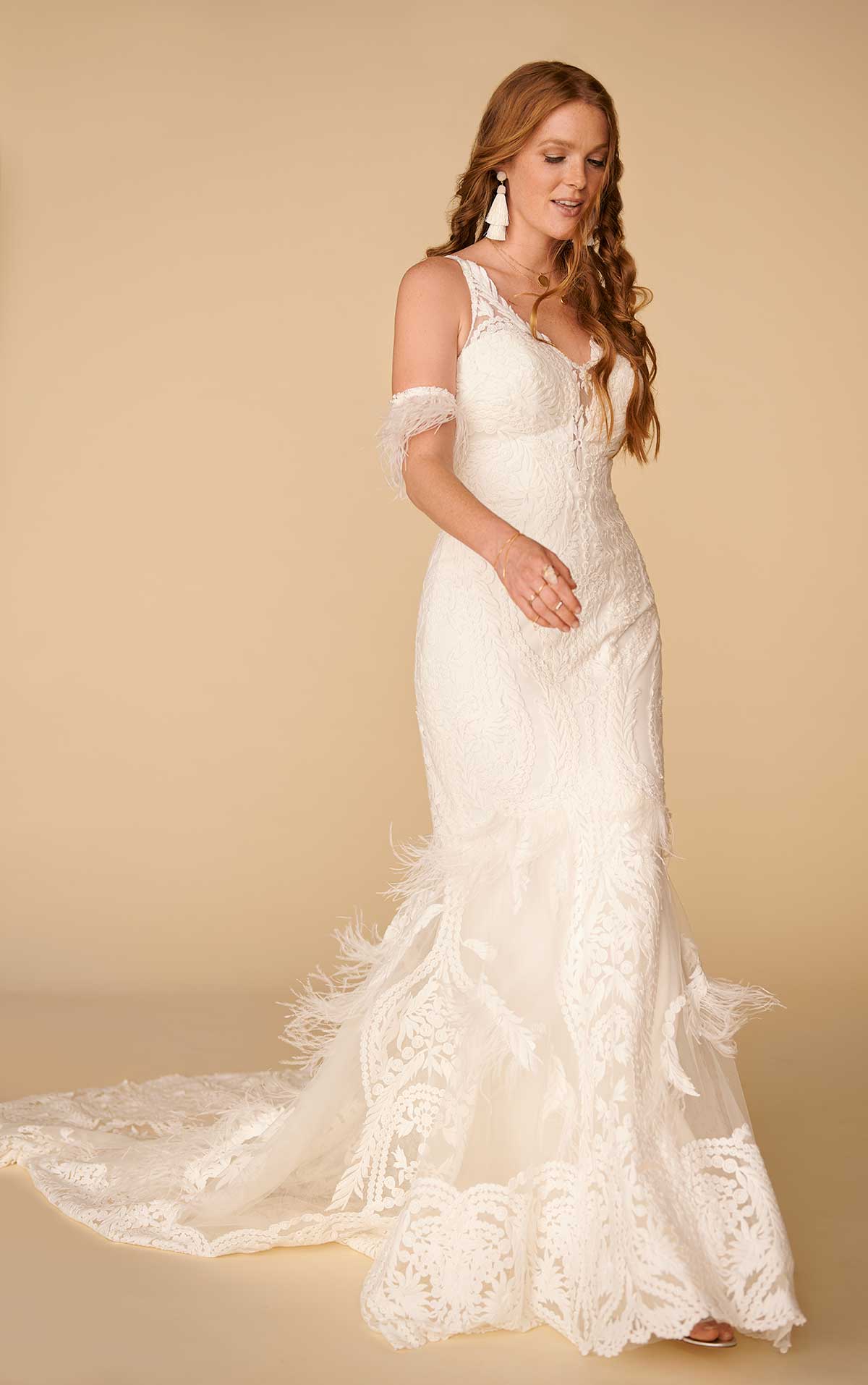All Who Wander offers effortless boho wedding dress silhouettes of retro-inspired laces, exotic patterns and rustic fringe details for a design that speaks to your adventure of lifelong love like never before.