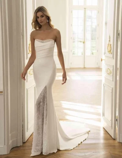 The ÉLYSÉE bridal division by Bridal Collective that was launched in 2019. The brand name is derived from the Ancient Greek word “Elysium,” meaning a place or state of perfect happiness. Timeless and gorgeous, the ÉLYSÉE collections are sure to amaze.